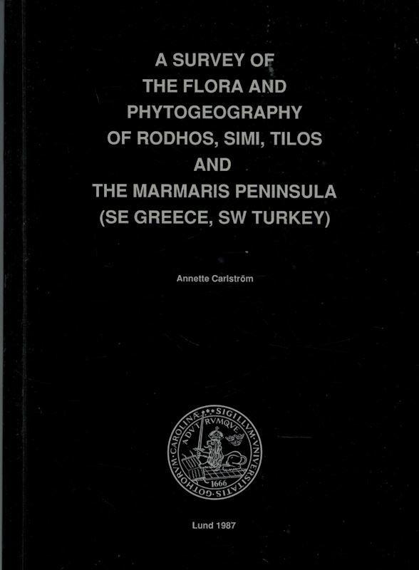 CARLSTROEM, Annette: A Survey of the Flora and Phytogeography of Rho- dos, Simi, Tilos and the Marmaris Peninsula (SE Greece, SW Turkey). 1987. 1594 distribution maps (dot maps). 323 p. 4to. Paper bd. 151.94 (29761)