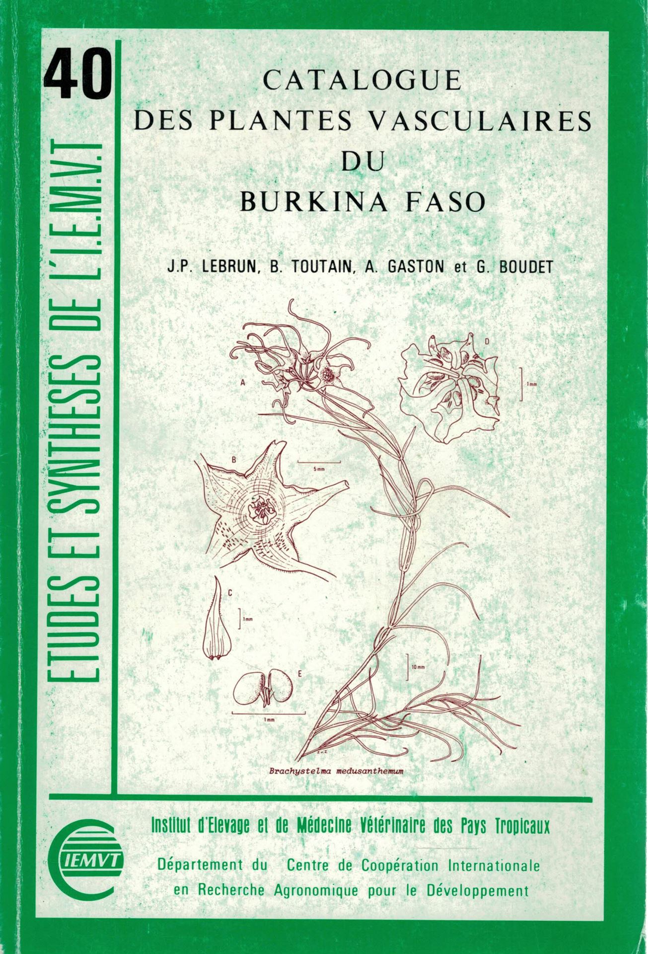 Lebrun, J.P., B.Toutain, A.Gaston et G.Boudet: Catalogue des PlantesVasculaires de Burkina Faso.1991.(Etudes et Syntheses de l' I.E.M.V.T.,Vol.40).341 p.gr8vo.Broche.(89362) 32.10