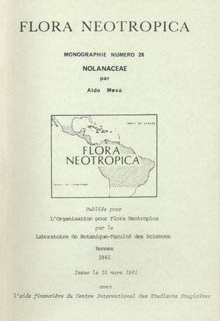 Flora Neotropica: Vol. 026: Mesa,Aldo:Nolanaceae.1981. 26 photographic plates. 35 figs. II,197 p. gr8vo. Paper bd. (3989) 21.40