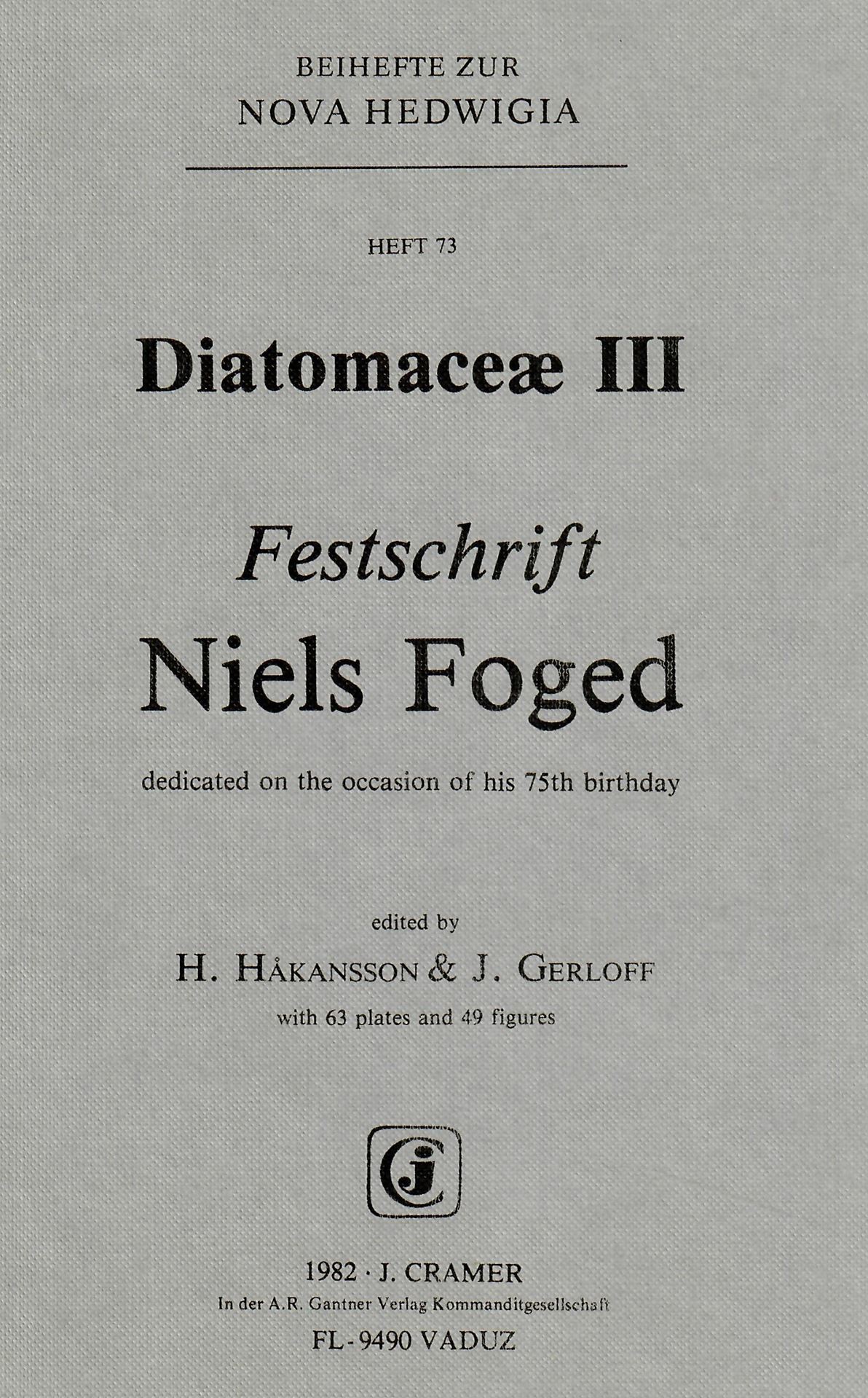 Hakansson, H. and J.Gerloff (Eds.): Diatomaceae III.Festschrift Niels Foged dedicated on the occasion of this 75th birthday.1982.(Beih.Nova Hedwigia 73). 63 plates.49 figs.386 p.gr8vo.Hardbound.(540) 61.00 (ISBN 978-3-7682-5473-1)