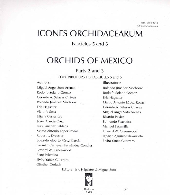 Illustrates 200 Mexican orchid species, with analytical details of floral and vegetative structures. Descrptions, nomenclature (including complete synonymy, and updated information on distribution, habitat and conservation. Twenty six new taxa proposed and another thirty eight new nomenclatural combinations and / or status changes are proposed.Includes a distribution map for each species, English texts and detailed descriptions in Spanish. Total of 213 pages.
