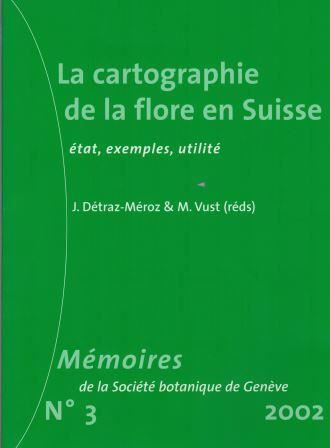 Détraz - Méroz, J. et M. Vust (eds.): La cartographie de la flore en Suisse: Etat, exemples, utilité. 2002. (Mém. Soc. Bot. de Genève,3). illus. 110 p. Broché. (85121) 55.64