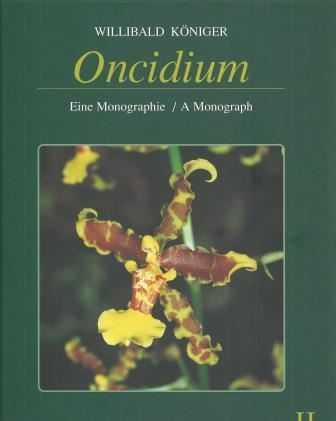 Königer, Willibald: Oncidium. Eine Monographie / A Monograph. Volume 2. 2005. Many col. photographs. 256 p. 4to. Hardcover. -Bilingual (German and English). (106094) 110.00
