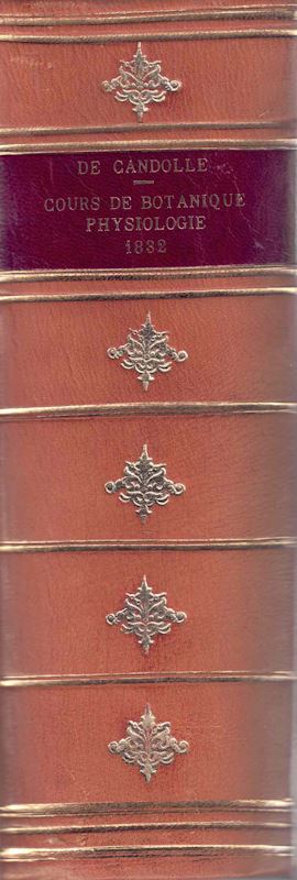 Physiologie Végétale ou Exposition des Frces et des Fonctions Vitales des Végétaux, pour servir de suire à l'Organographie Végétale, et d'Introduction à la Botanique Géographique et Agricole. 3 volumes bound in 1 volume. 1832.(Cours de Botanique, Seconde partie: Physiologie). XXXII, 1580 p. Halfleather.