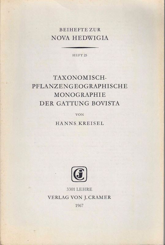 KREISEL, Hanns: Taxonomisch-pflanzengeographische Monographie der Gattung Bovista. 1967. (Nova Hedwigia, Beih. XXV). 70 Fig. VII,244 S.(5863) 62.00(ISBN 3-7682-5425-9)