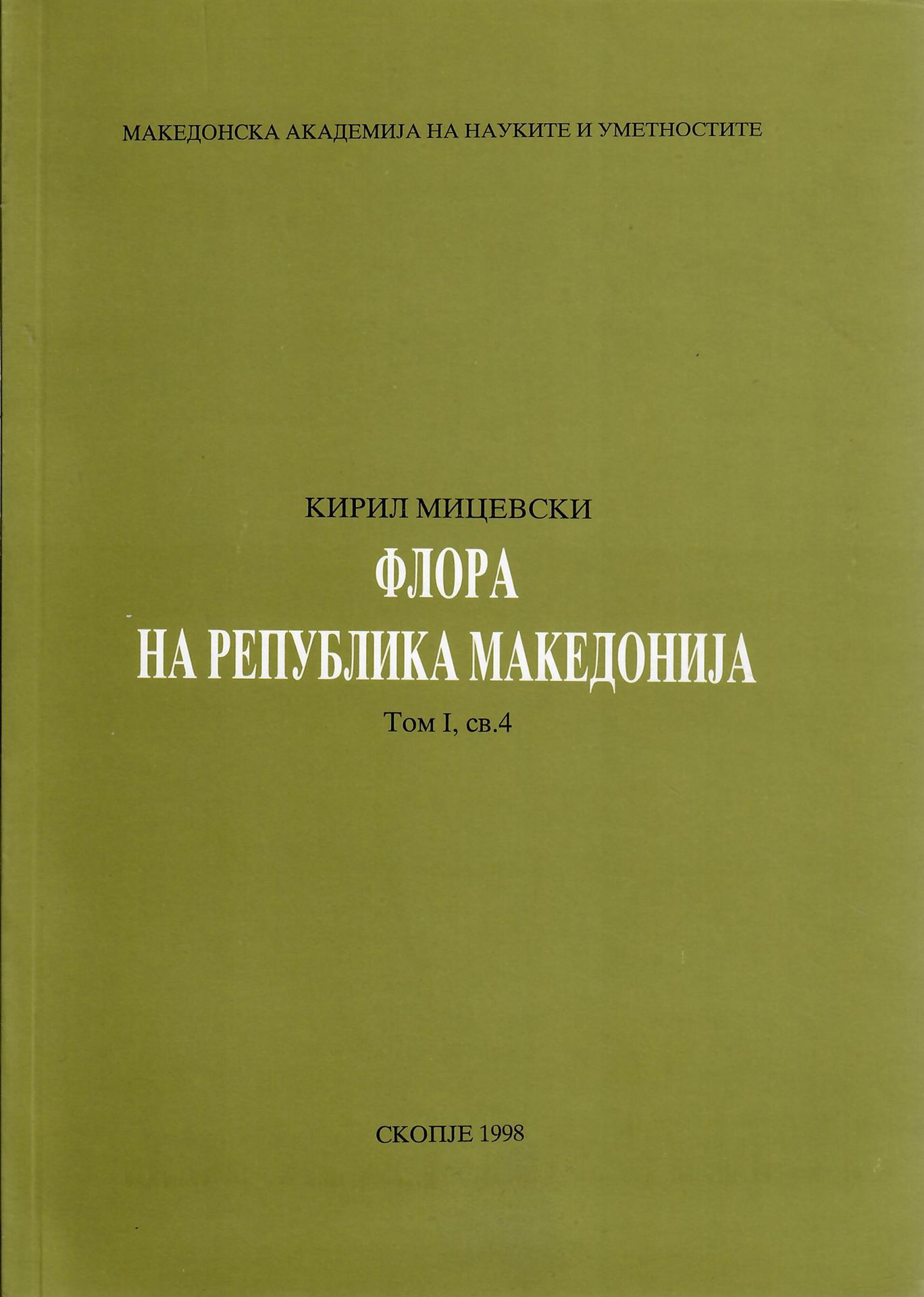 The Flora of the Republic of Macedonia. Volume I, part 4. 1998. 333 p. gr8vo. Paper bd.- In Macedonian.