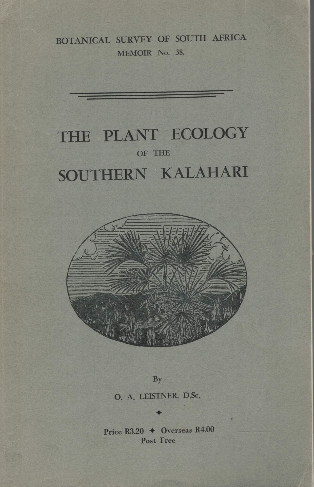 The Plant Ecology of the Southern Kalahari. 1967. (Bot. Res. Inst., Botanical Survey Memoir,38). 1 map (b/w). 10 figs. 51 b/w photogr. on plates. 172 p. gr8vo. Paper bd.