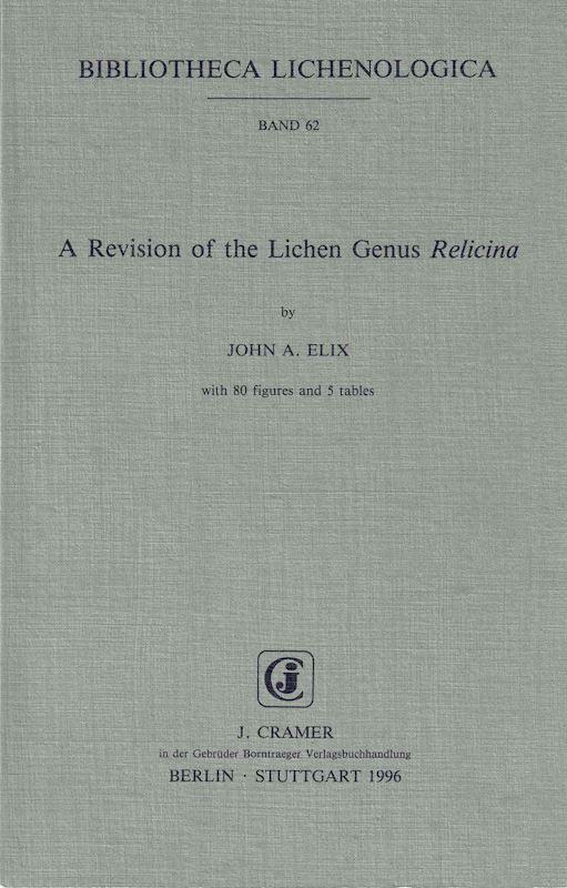 Bibliotheca Lichenologica: Volume 062: Elix, J. A.: A Revision of the Lichen Genus Relicina.1996. 5 tabs. 80 figs. 150 p.gr8vo.Paper bd. (65924) 47.00