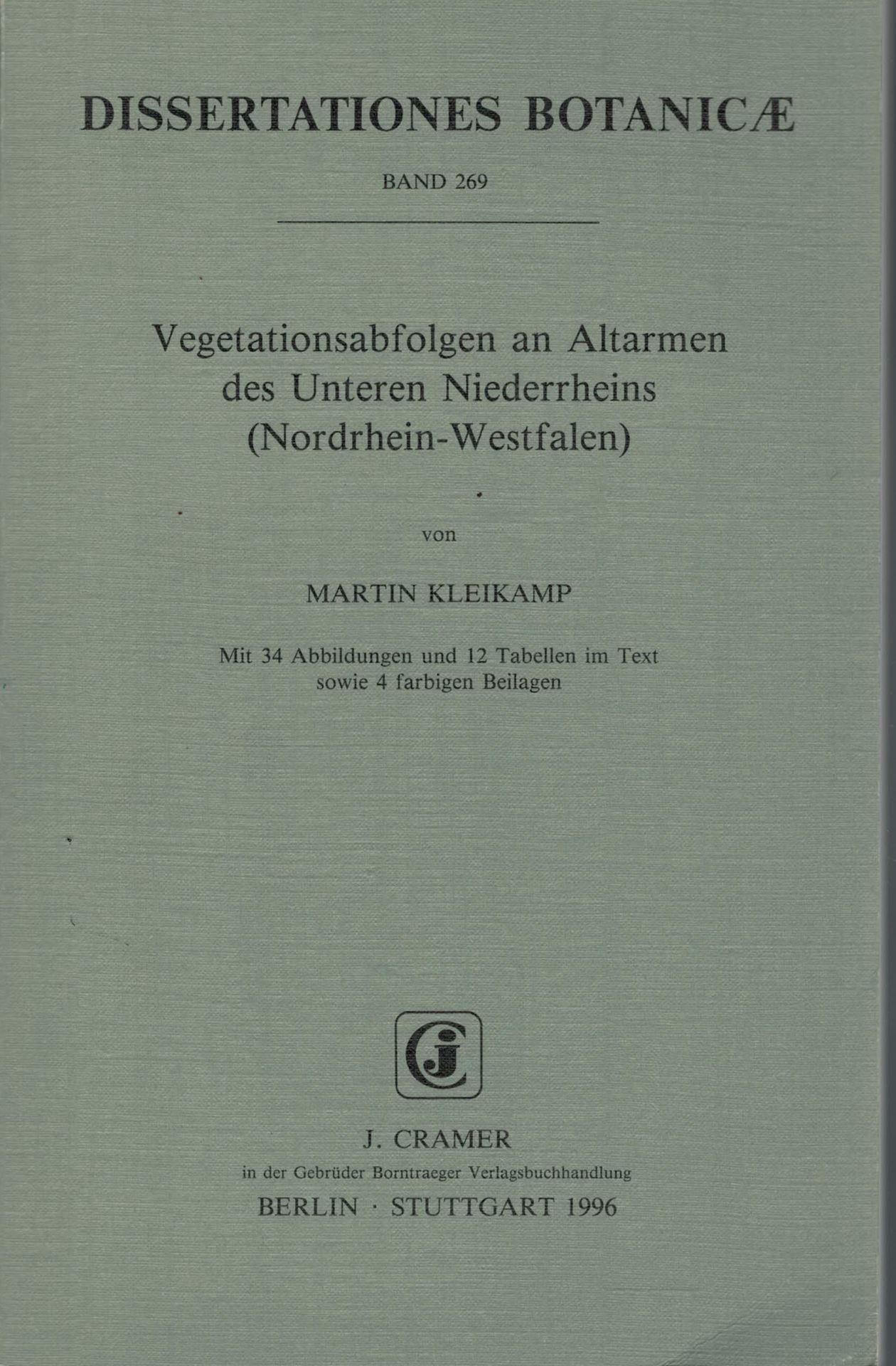 Dissertationes Botanicae: Volume 269: Kleikamp, Martin: Vegetationsab- folgen an Altarmen des Unteren Niederrheins (Nordrhein - Westfalen).1996 12 Tab. 4 farbige Beilagen. 34 Fig. IV,106 S.gr8vo.Broschiert. (66901) 41.00