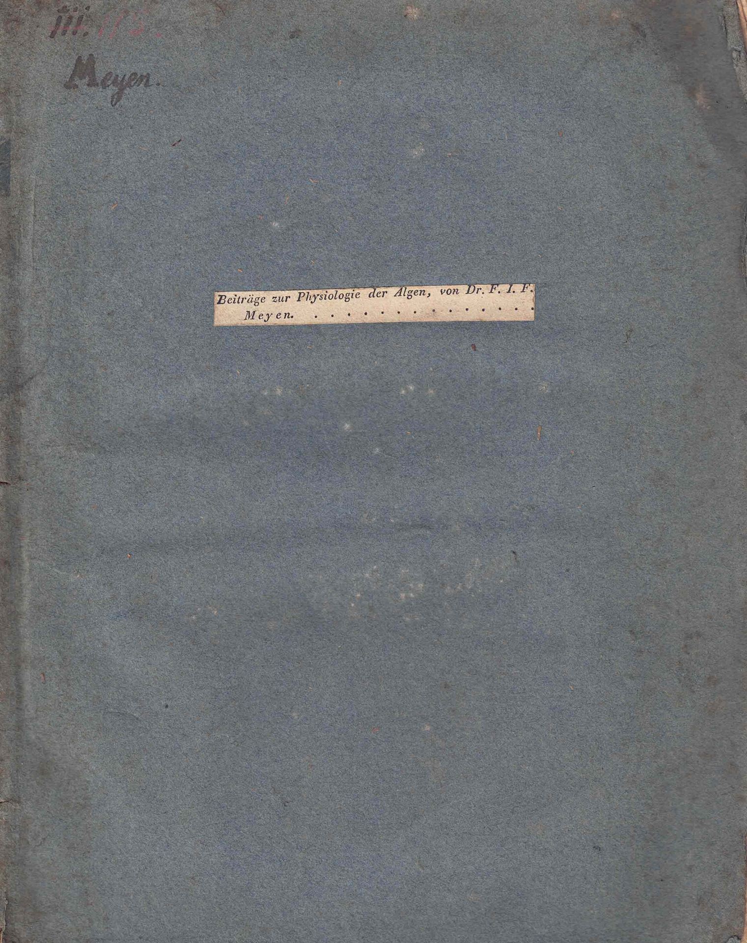 Meyen, F. L. E.: Beiträge zur Physiologie und Systematik der Algen.1828. 4 lithographs (partly col.). 68 p. 4to. Paper covers. - Uncutcopy. (84746) 128.40