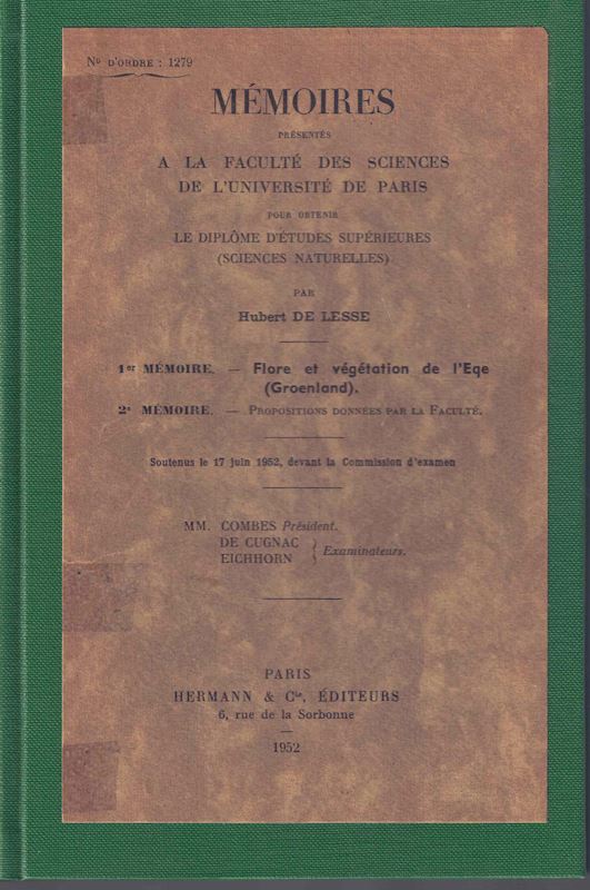 Flore et Végétation de l'Eqe (Groenland). 1952. (Diss., Paris).28 pls. 128 p. gr8vo. Hardcover.
