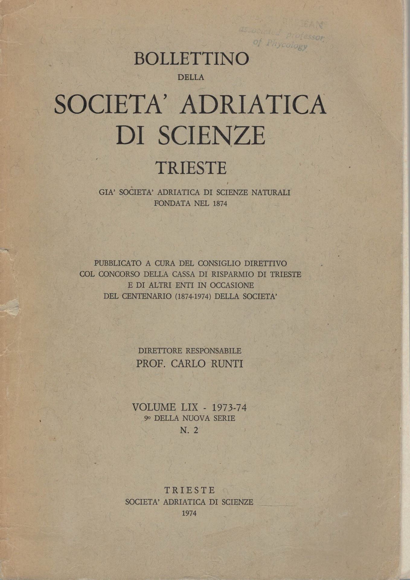Rodoficee calcaree dei mari Italiani. 1974.(Bolletino della Societa Aderatica di Scienze, 59). 132 p. Paper bd.