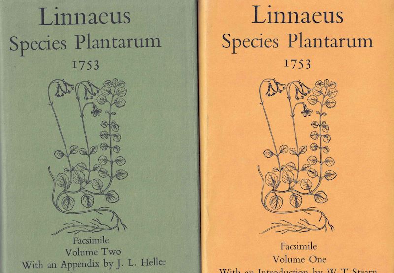 Species Plantarum. 2 vols. 1753. Facsimile 1957-1959. with an introduction by W. T. Stearn, and appendix by J. L. Heller, plus suppl. by C. E. Jarvis. gr8vo. Hardcover. (Ray Soc. Publications 140 & 142).