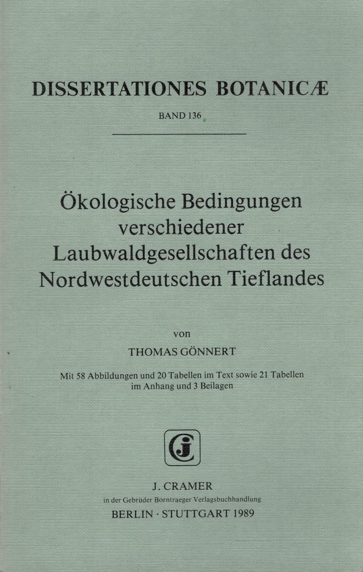 Volume 136: Gönnert, Thomas: Ökologische Bedingungen verschiedener Laubwaldgesellschaften des nordwestdeutschen Tieflandes. 1989. 58 Abb. 20 Tab. im Text sowie 21 Tab. im Anhang. IV, 224 S. gr8vo. Broschiert.