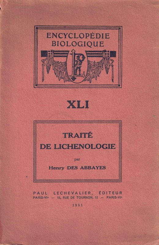 Abbayes, Henry des: Le Traité de Lichénologie. 1951. (Réédition 2015).109 figs. X, 217 p. Paper bd. (@) 52.43