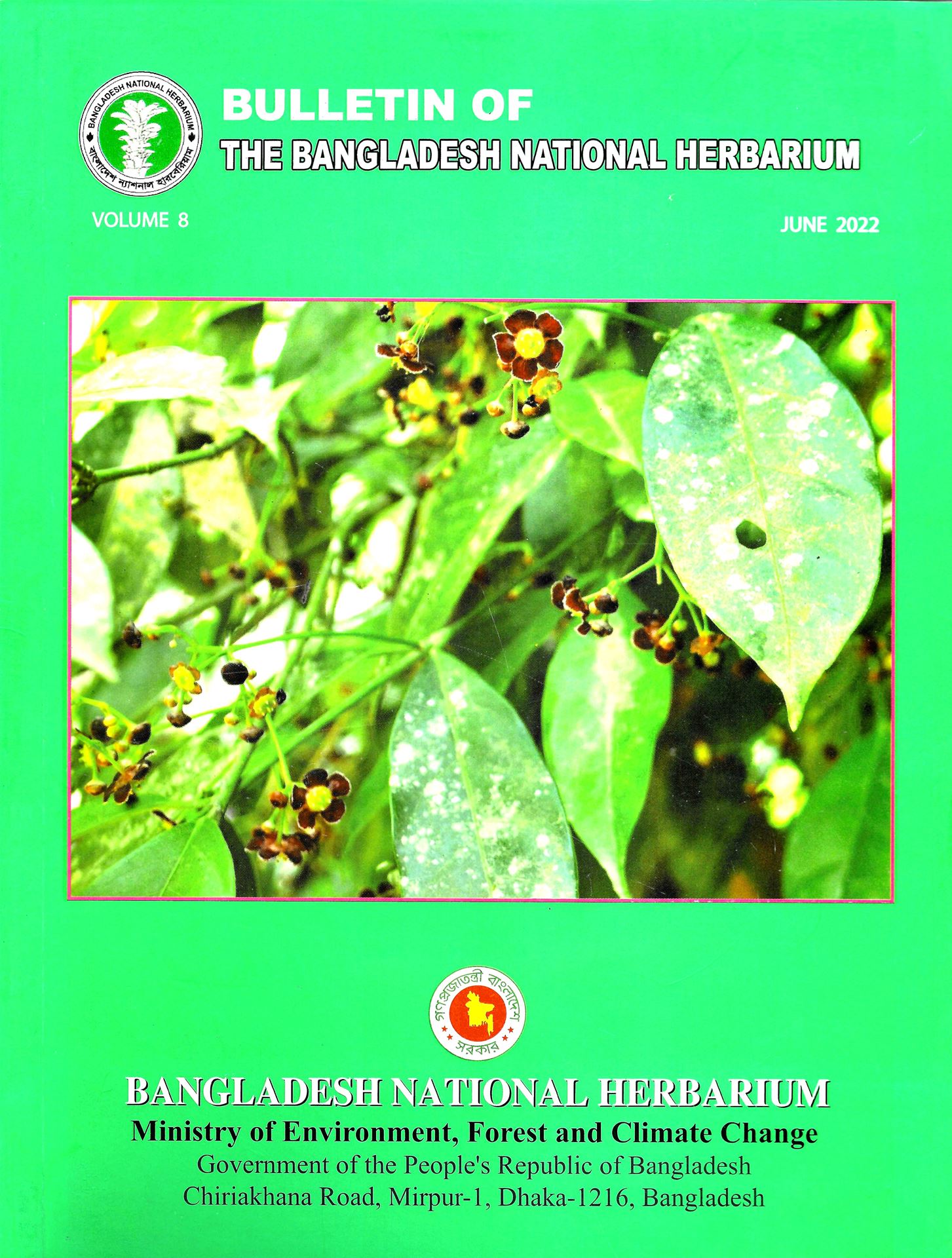 1: A preliminary taxonomic report on the angiospermic flora of Hatia Island (Noakhali District) (Dicotyledones). 1988. /2.Taxonomic studies in the genus Albizia Durazz,/ 3: A preliminary ethonobotanical surevy in the Jointiapus, Tamabil and Jaflong Area ( Jointiapur Upazila), Sylhet/ 4: Nine contributions by various authors on angiosperms/ 5: 3 contributions on flora/ 6: Six contributions mainly on new records for the Bangladesh flora/ 7: Two contributions on flora/ 8: Six contributions on flora and angiosperms.