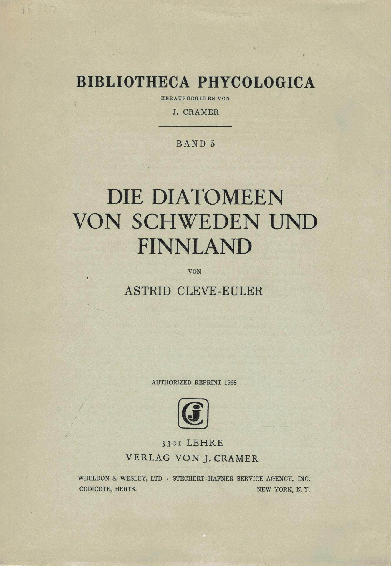 Cleve - Euler, Astrid: Die Diatomeen von Schweden und Finnland. 1951 -1955. (Reprint). 228 Taf. 1196 S. 4to. - Broschiert. (104826) 350.00