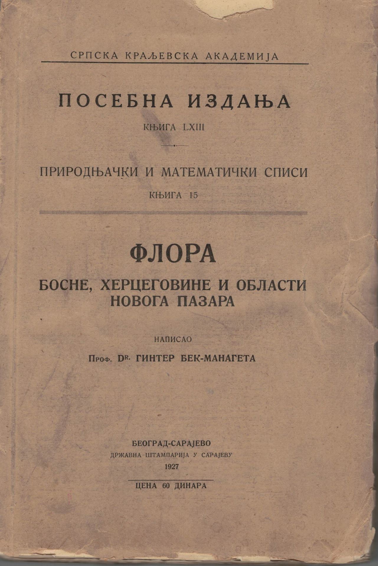 Flora Bosnae, Hercegovinae et Regionis Novipazar. 487 p. gr8vo. Paper bd.--In Serbian , with Latin nomenclature
