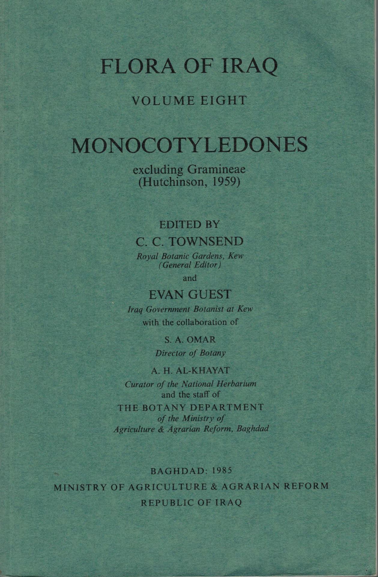 Flora of Iraq: Ed. E. Guest, C.C. Townsend a.oth. Volume 008: Monocotyledones excluding Gramineae. (Hutchinson, 1959). 1985. 9 distr. maps. 92 pls. 1 col.photo. IX,440 p. gr8vo. Paper bd.(3870) 51.36