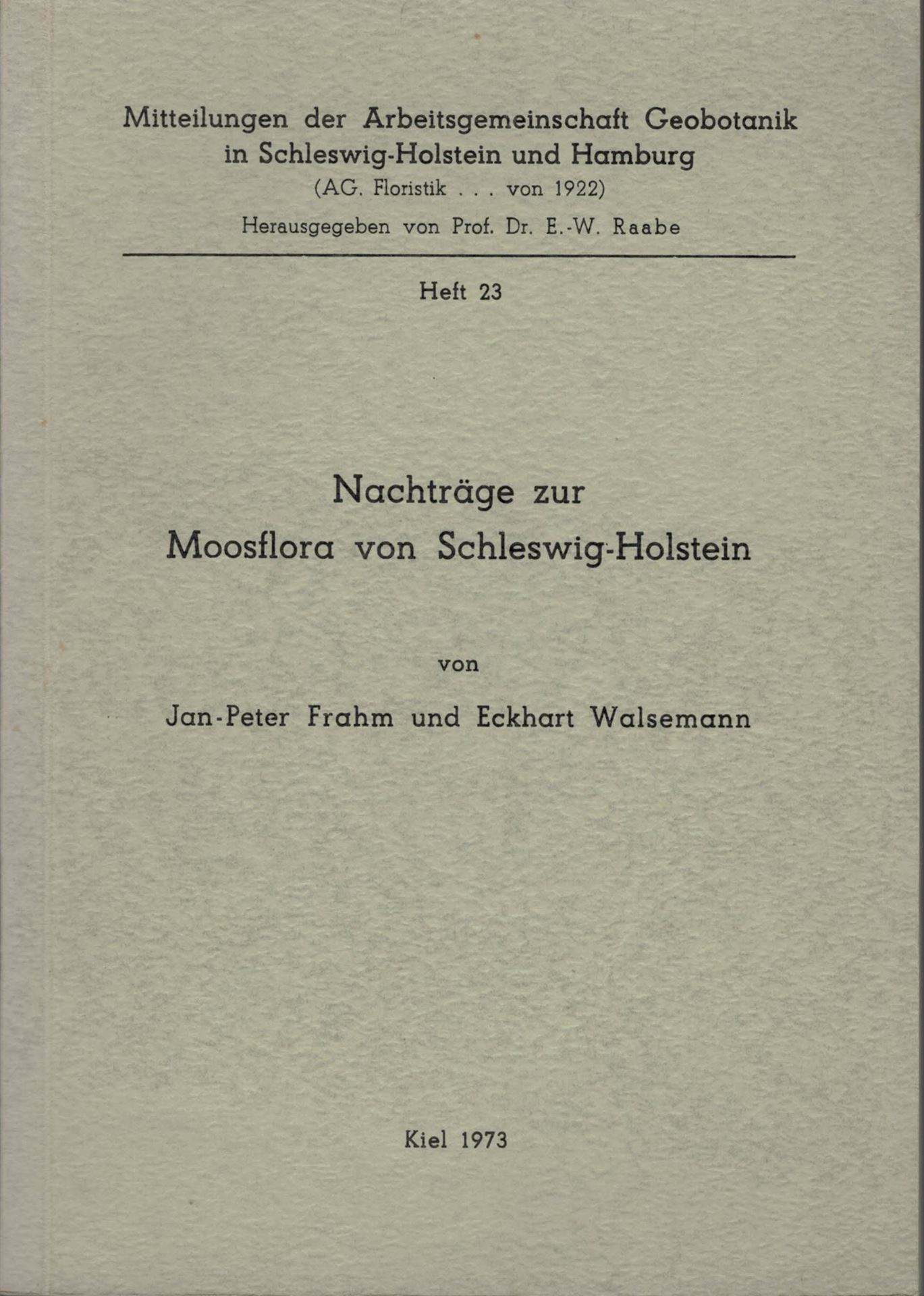 FRAHM, Jan-Peter und Eckhart Walsemann: Nachtraege zur Moosflora vonSchleswig-Holstein. 1973. (Mitteilungen der Arbeitsgemeinschaft Geobo-tanik in Schleswig-Holstein und Hamburg, Heft 23). 18 Tafeln (Strich-zeichnungen). Mit Verbreitungskarten im Text. 205 S. 8vo. Broschiert.(4442) 18.00