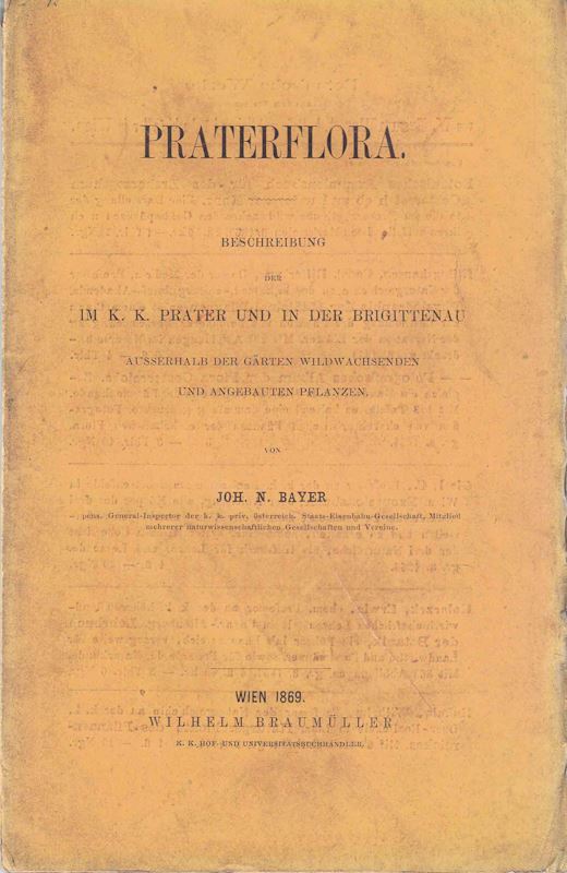 Praterflora. Beschreibung der im K.K.Prater und in der Brigittenau ausserhalb der Gärten wildwachsenden und angebauten Pflanzen. Wien 1869. VIII, 104 S. 8vo. Originalbroschur.
