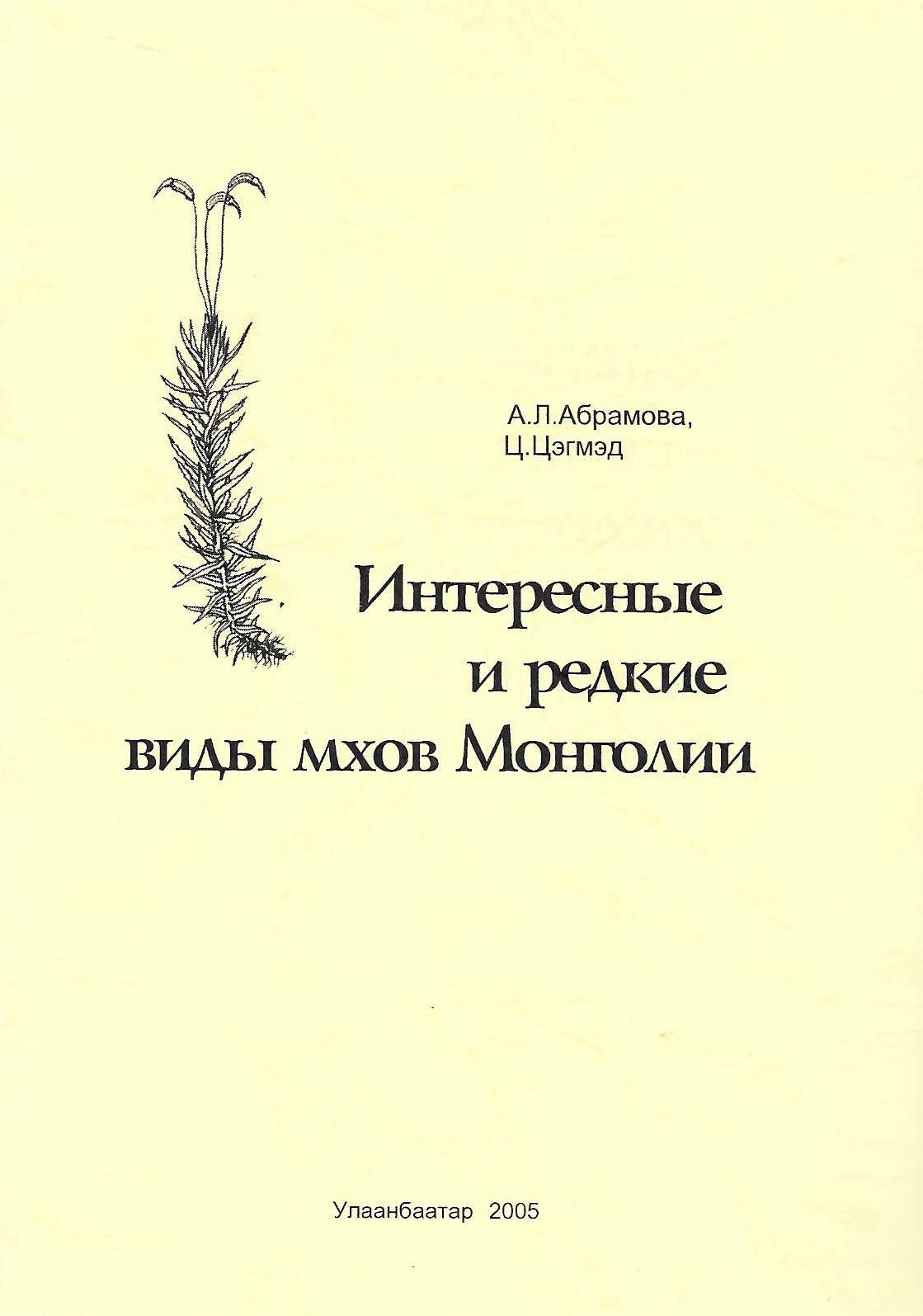Abramova, A. L. and Tsog Tsegmed: Rare and interesting species of mosses of Mongolia. 2005. Some line-figs. 130 p. gr8vo. Paper bd. -In Russian, with Latin nomenclature. (89776) 27.82