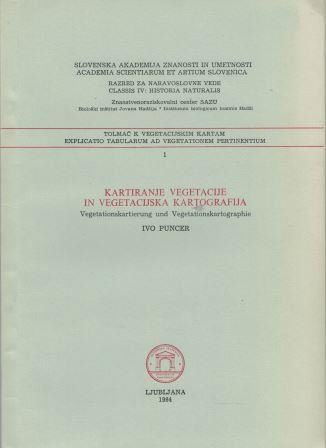 Slovenska Akademija Znanosti in Umetnosti (Academia Scientiarum et Artium Slovenica). Classis IV: Historia Naturalis: Explicatio Tabularum ad Vegetationem Pertinentium. No. 1: Puncer,Ivo: Kartivanje Vegetacije in Vegetacjistra Kartografija (Vegetationskartierung und Vegetations- kartographie). 1984. 1 foldg. tab. of standard colours and signs for vegetation maps. 51 p. gr8vo.Paper bd.-With German summary. 22.47 (310)