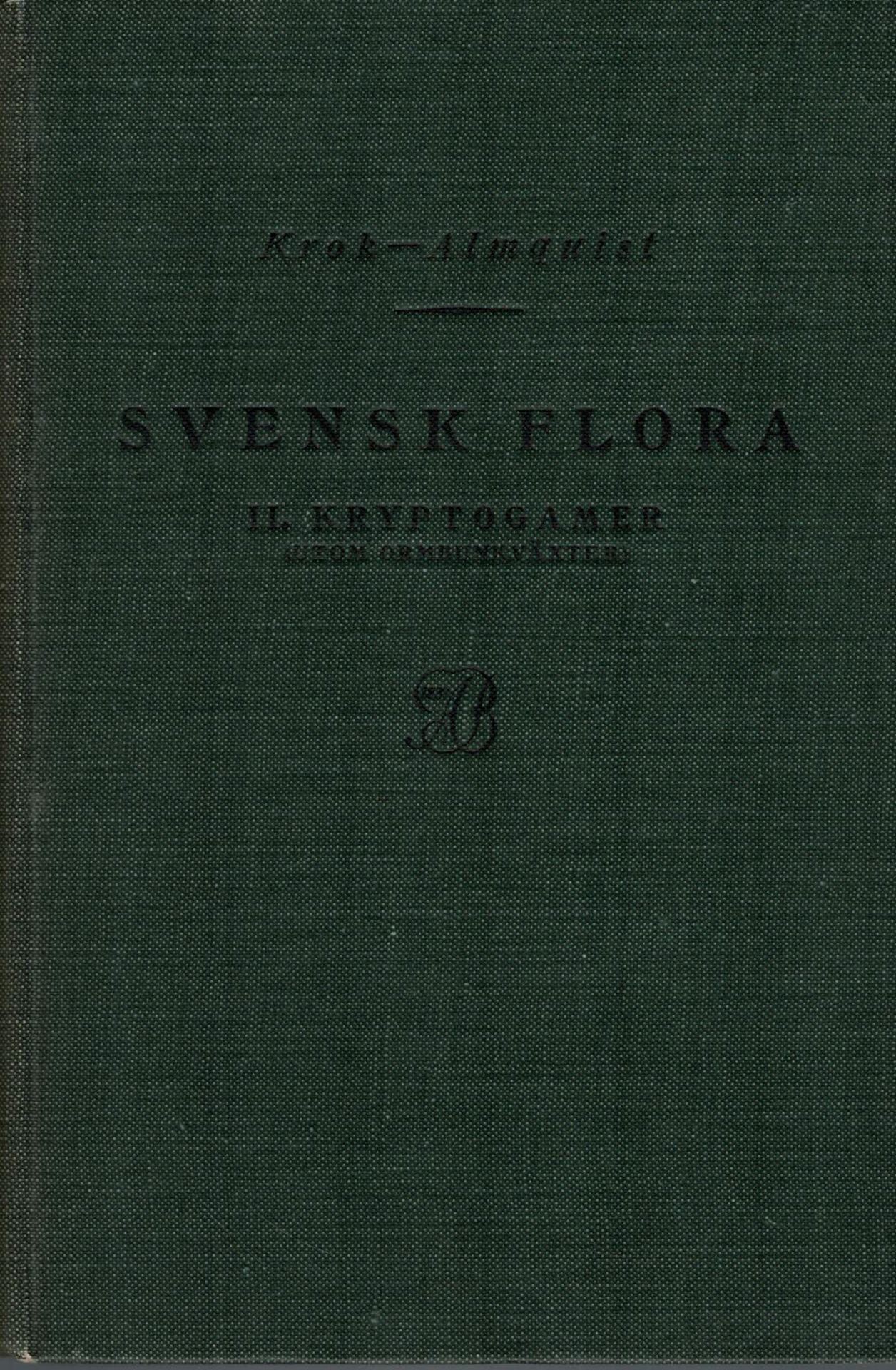 KROK, Th. & S.ALMQUIST: Svensk Flora foer Skolor. Tl. II: Kryptogamer (Utom Ormbunkvaexter). 5th ed. 1932. VIII,360 p. kl8vo. Hardcover. - In Swedish, with Latin nomenclature and species index. (45906) 22.47