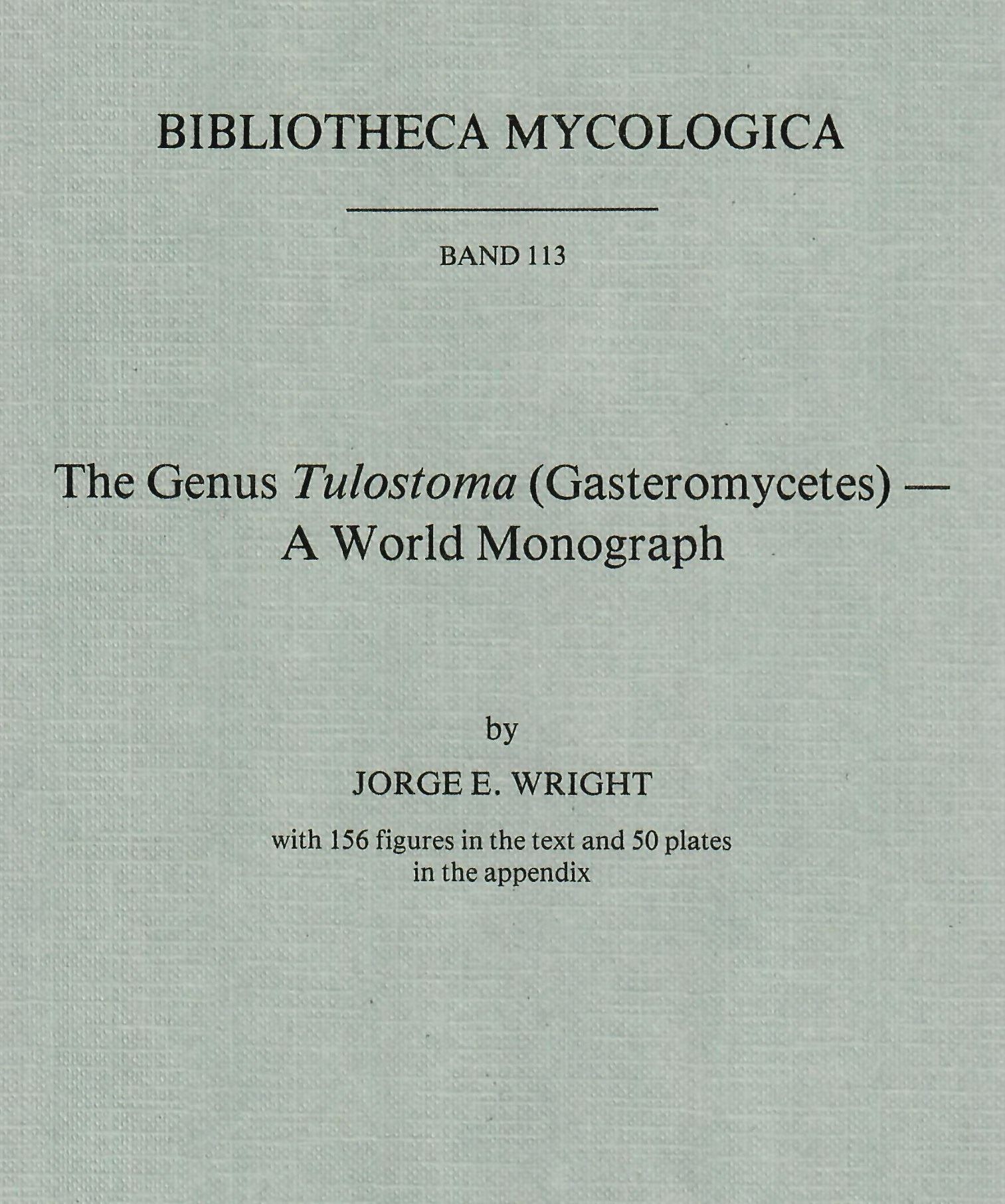 WRIGHT, Jorge E.: The Genus Tulostoma (Gasteromycetes). A World Mono- graph. 1987. (Bibliotheca Mycologica, Bd. 113). 156 figs. 50 pls. 338 p. gr8vo. Paper bd. (27768) 82.00