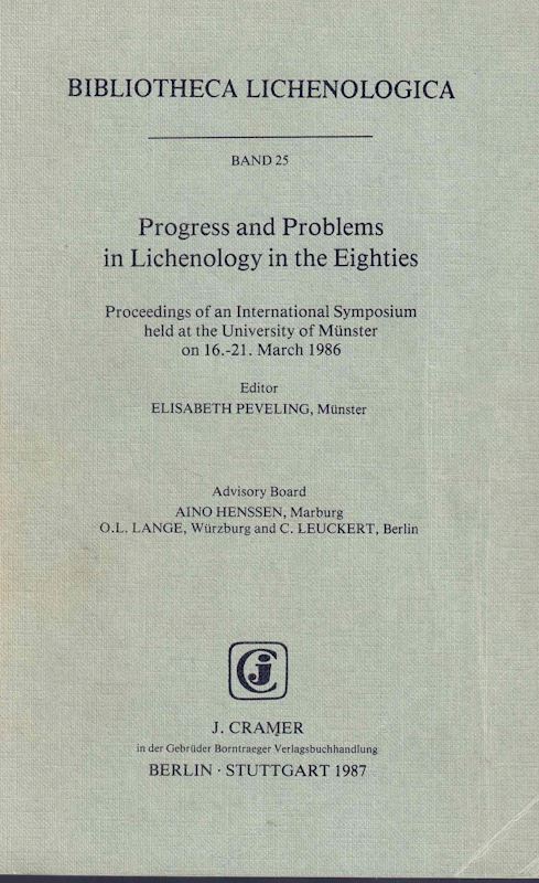 Volume 025: Peveling,Elisabeth (ed.):Progress and Problems in Lichenology in the Eighties. Proceedings of an Interna- tional Symposium held at the University of Muenster on 16.-21. March 1986. 1987. figs. distrib.maps. tabs. XV,497 p. gr8vo. Paper bd.